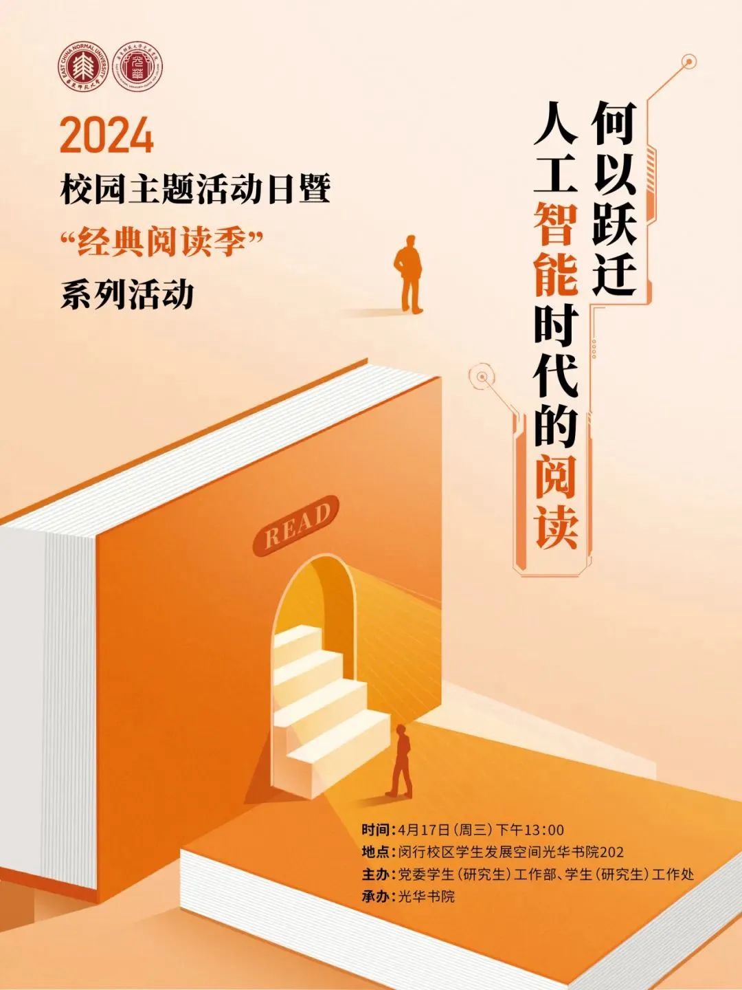 2024年校园主题活动日暨“经典阅读季”系列活动之“何以跃迁,人工智能时代的阅读”主题沙龙,将邀请h动漫 余南平教授参加“从阅读到智慧” 师长圆桌会,与大家一起共同分享AI时代的阅读心得,一起探索人工智能时代阅读的新跃迁。