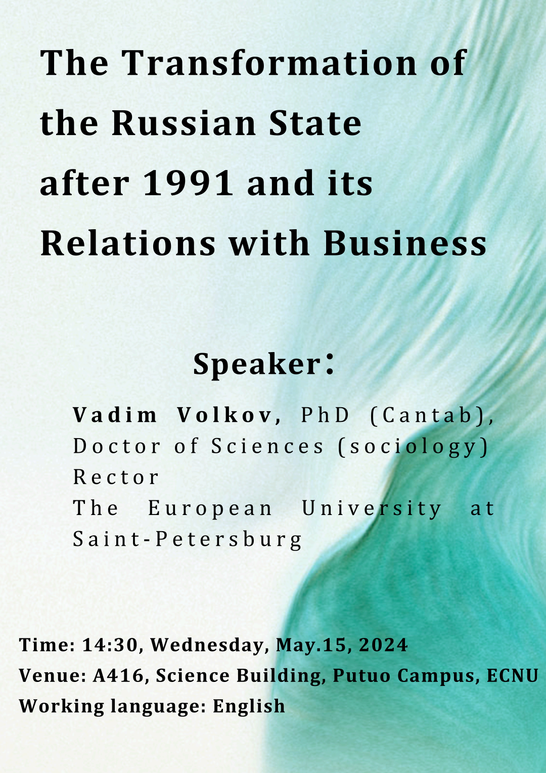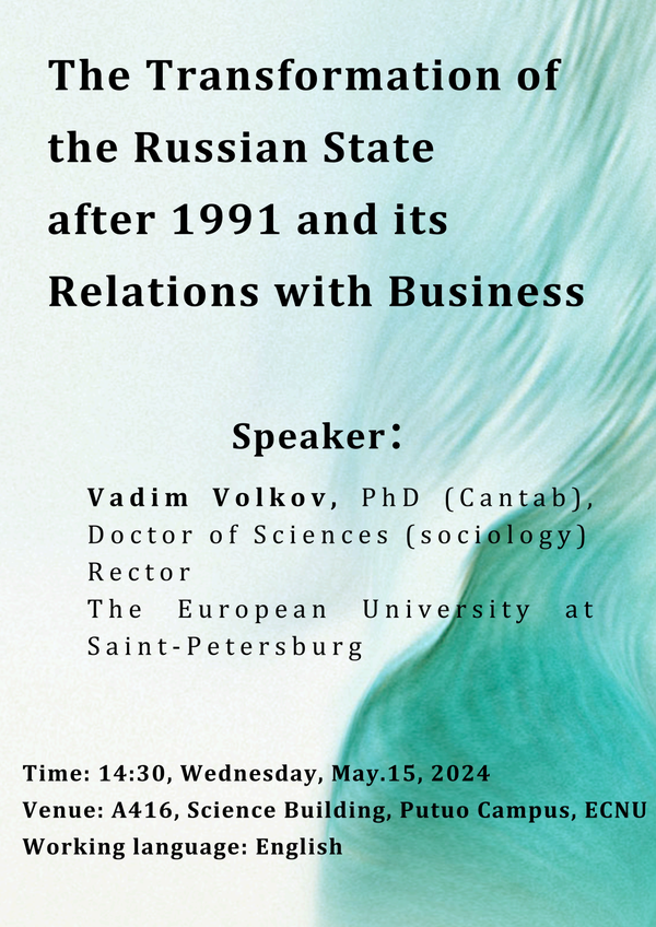 活动预告|「学术讲座」沃尔科夫·瓦迪姆·维克托罗维奇:1991年后俄罗斯国家的转型及其与商业的联系