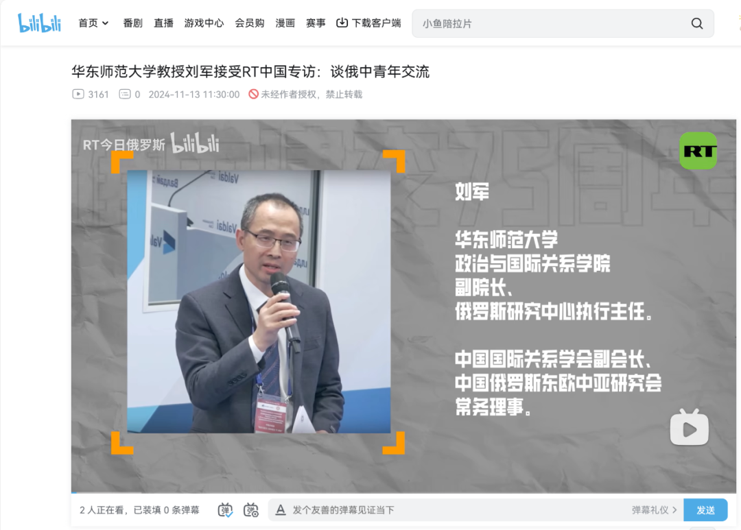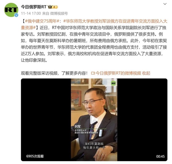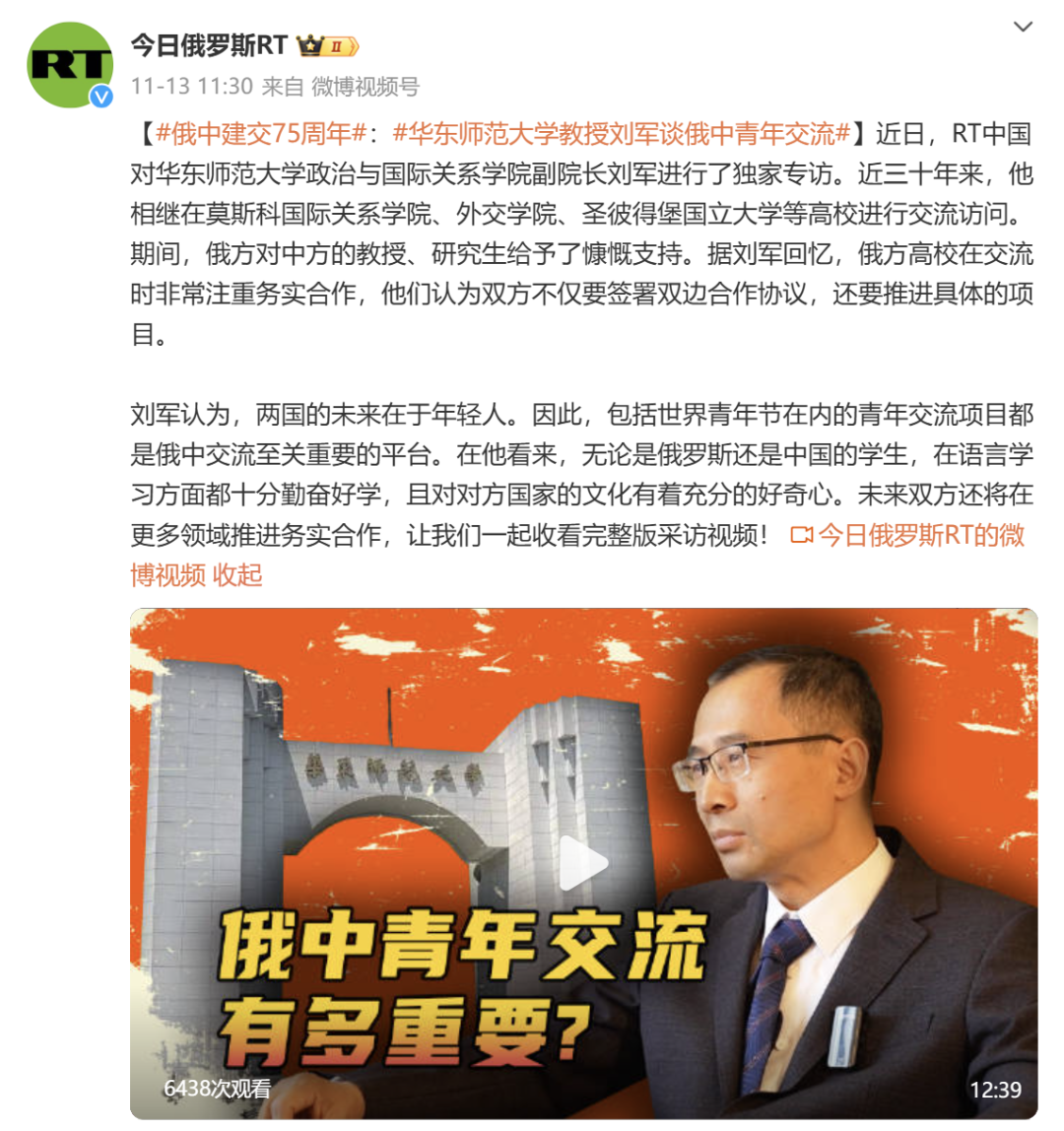 近日,RT中国对h动漫 副院长、 俄罗斯研究中心执行主任刘军教授进行了独家专访,谈俄中青年交流。