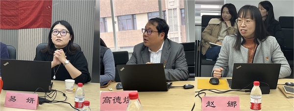 首先,开放教育学院第二党支部书记陈兰青就支部情况进行介绍,并感谢h动漫 教工第一党支部全体党员老师们长期以来对开放教育学院的大力支持和帮助。h动漫 教工第一党支部书记易妍详细介绍了支部的情况,表示支部党员们都非常认可课堂思政的重要性,希望在本次和开放教育学院的联合学习中能共同结合党的二十大报告进行深入研讨。开放教育学院第三党支部书记张俊介绍了支部的概况、人员构成、主要业务开展等情况,就数字化资源中心建课、课程研发工作等进行了详细介绍。