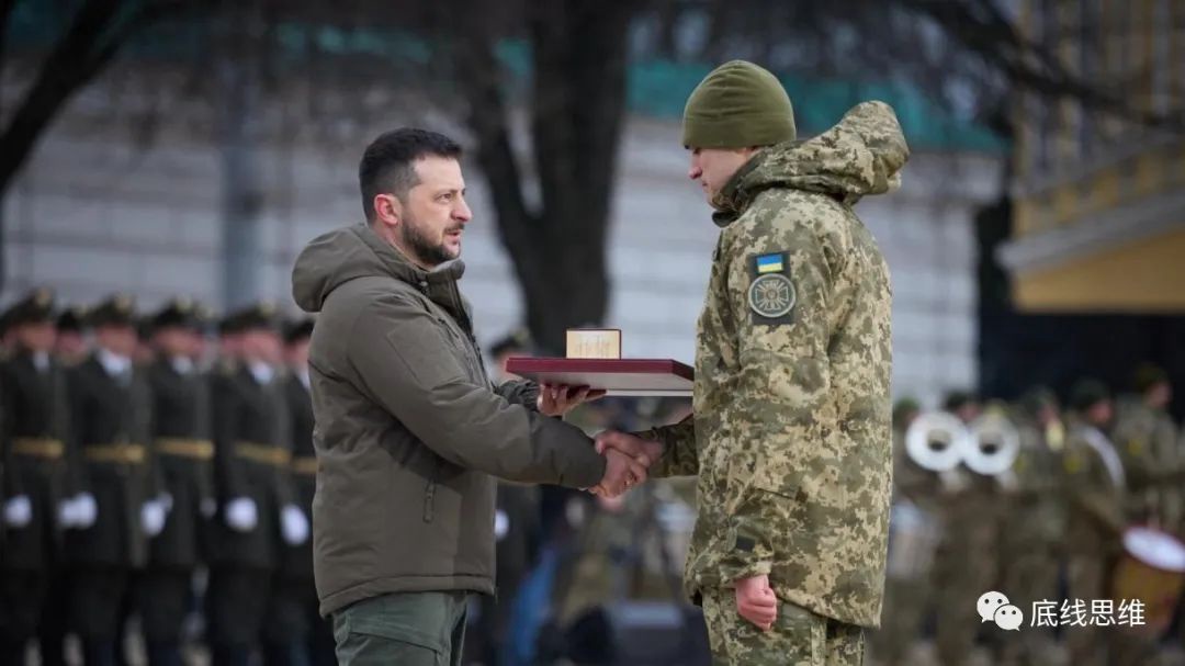 乌克兰总统泽连斯基在俄乌战争一周年之际向乌克兰军队成员授予国家勋章,图自TRT