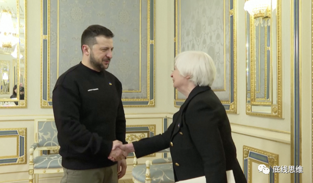 当地时间2月27日,美国财长耶伦访问乌克兰,与泽连斯基举行会谈,并宣布12.5亿美元援助。图自路透社