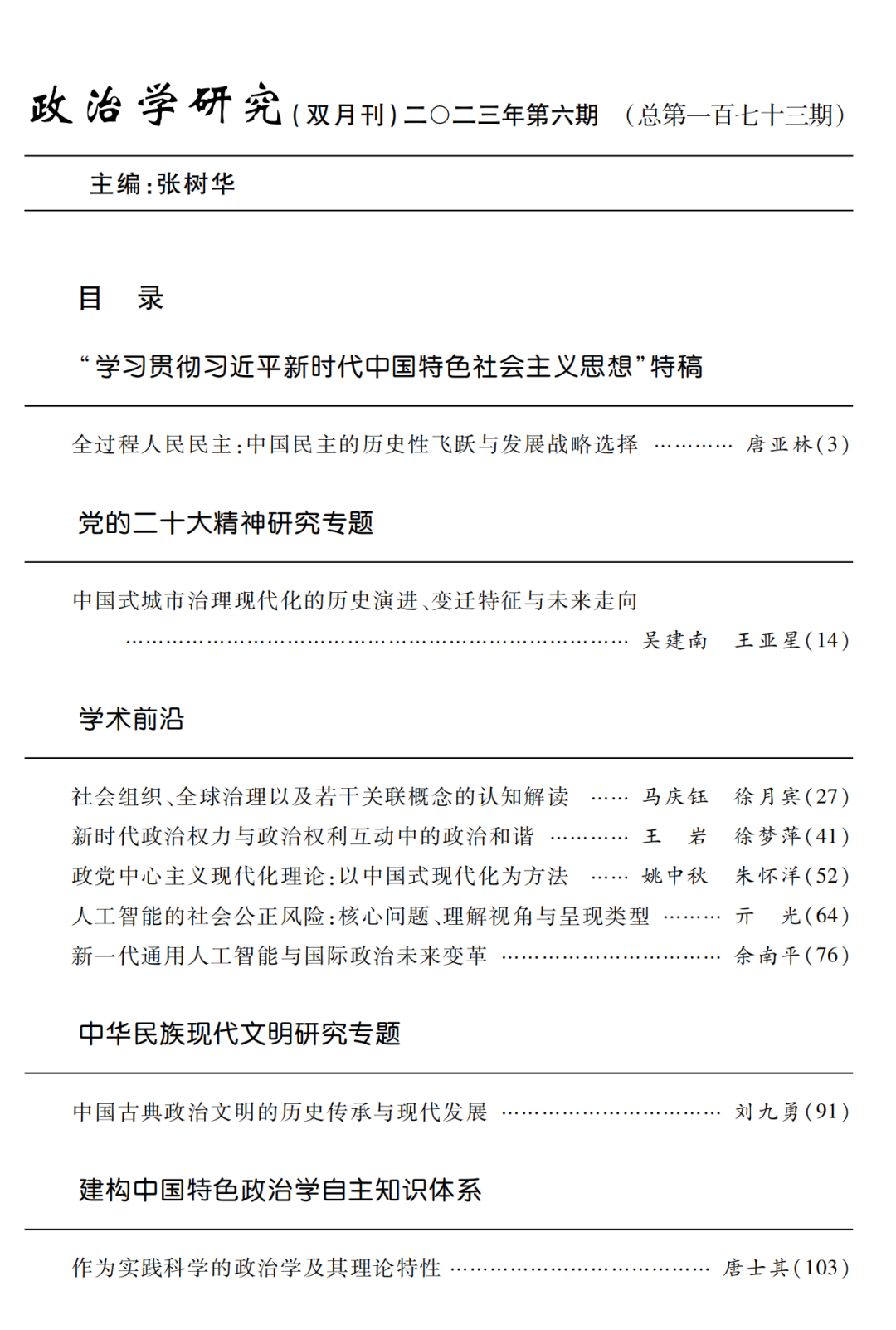 祝贺!h动漫 余南平教授论文《新一代通用人工智能与国际政治未来变革》在《政治学研究》发表